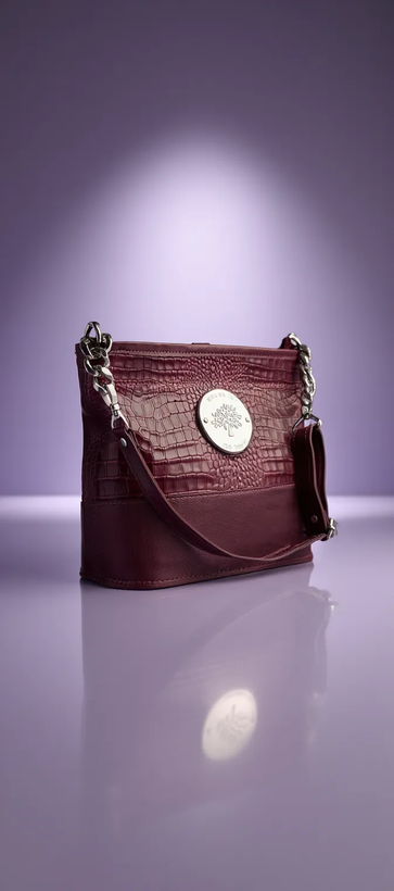 تمام چرم طبیعی، رنگ زرشکی طرح کروکو- دارای یک جیب در داخل کیف ویک جیب در پشت محصول-دارای یراق آبکاری و رنگ ثابت- ابعاد 10×22×24: 1