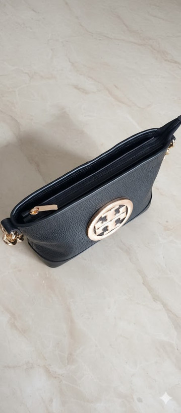 تمام چرم طبیعی، رنگ مشکی فلوتر- دارای یک جیب در داخل کیف ویک جیب در پشت محصول-دارای یراق آبکاری و رنگ ثابت- ابعاد 10×22×24: ۱