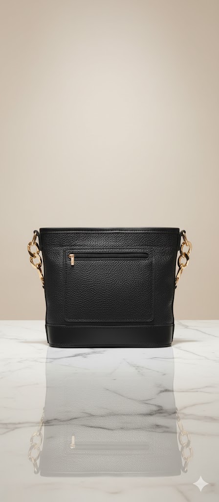 تمام چرم طبیعی، رنگ مشکی فلوتر- دارای یک جیب در داخل کیف ویک جیب در پشت محصول-دارای یراق آبکاری و رنگ ثابت- ابعاد 10×22×24: ۱