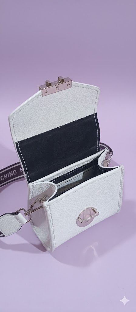 دستهبندی: زنانهتمام چرم طبیعی،دستدوز، رنگ سفید فلوتر- ابعاد ۱۳×۱۵×۸ -دارای یک جیب جای کارت در داخل کیف، یراق آبکاری و رنگ ثابت: ۱