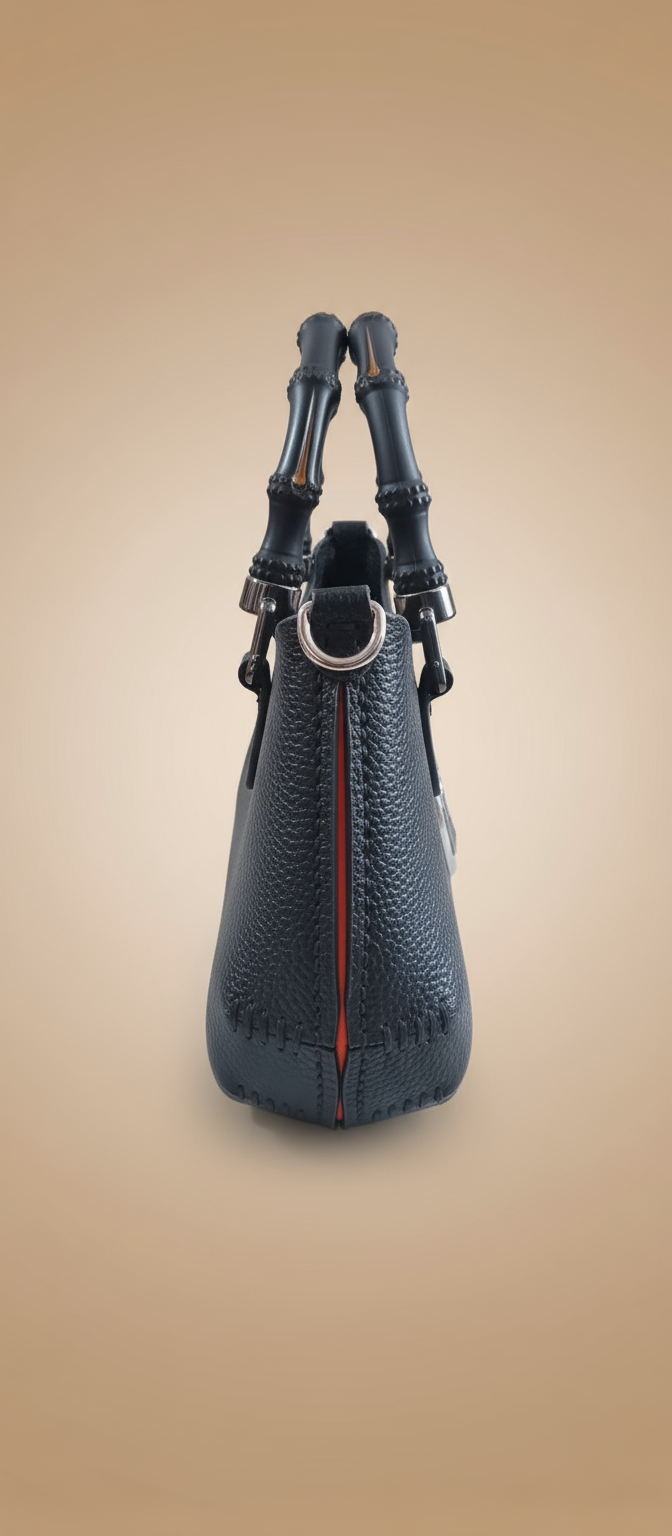 تمام چرم طبیعی-دستدوز- رنگ مشکی طرح فلوتر- ابعاد ۱۸×۲۹ -یراق آبکاری و رنگ ثابت-دارای یک جیب در داخل کیف ویک جیب در پشت محصول: ۱