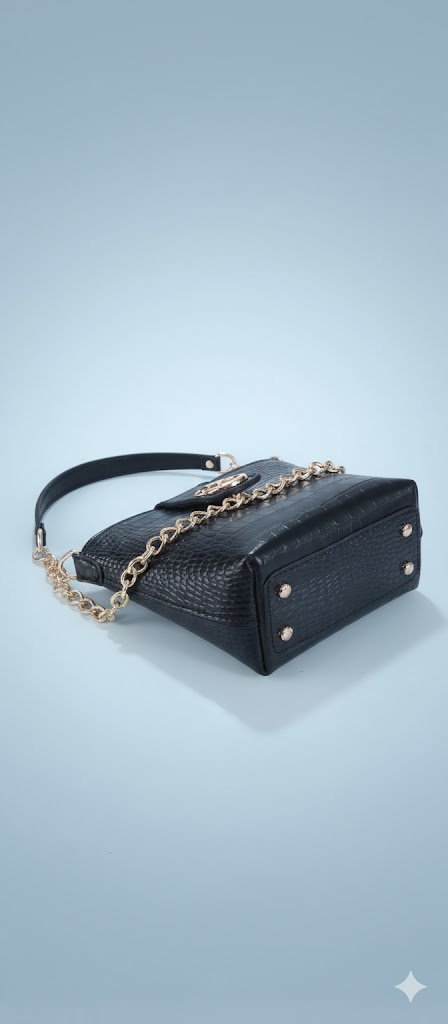 تمام چرم طبیعی- رنگ مشکی طرح کروکو -طراحی لوکس و زیبا-ابعاد ۱۰×۱۸×۲۴-دارای یک جیب در داخل کیف ویک جیب جای کارت در پشت محصول-یراق آبکاری و رنگ ثابت: ۱