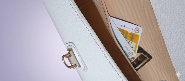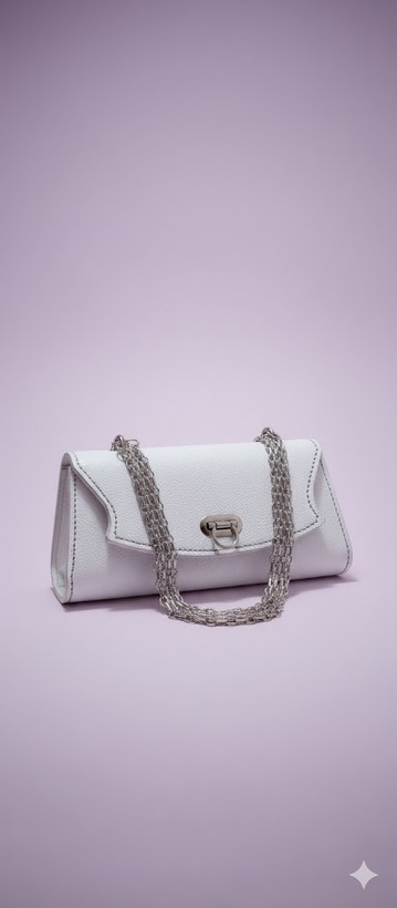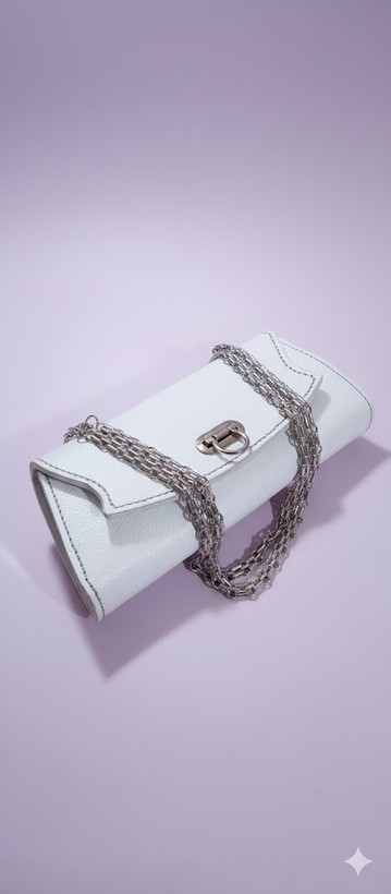 تمام چرم طبیعی- دست دوز - رنگ سفید فلوتر-ابعاد ۱۲×۲۸ دارای یک جیب در داخل کیف ویک جیب جای کارت در پشت محصول-یراق آبکاری و رنگ ثابت: ۱