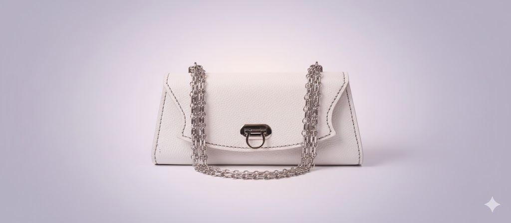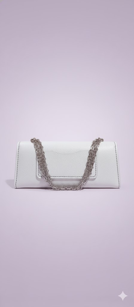 تمام چرم طبیعی- دست دوز - رنگ سفید فلوتر-ابعاد ۱۲×۲۸ دارای یک جیب در داخل کیف ویک جیب جای کارت در پشت محصول-یراق آبکاری و رنگ ثابت: ۱