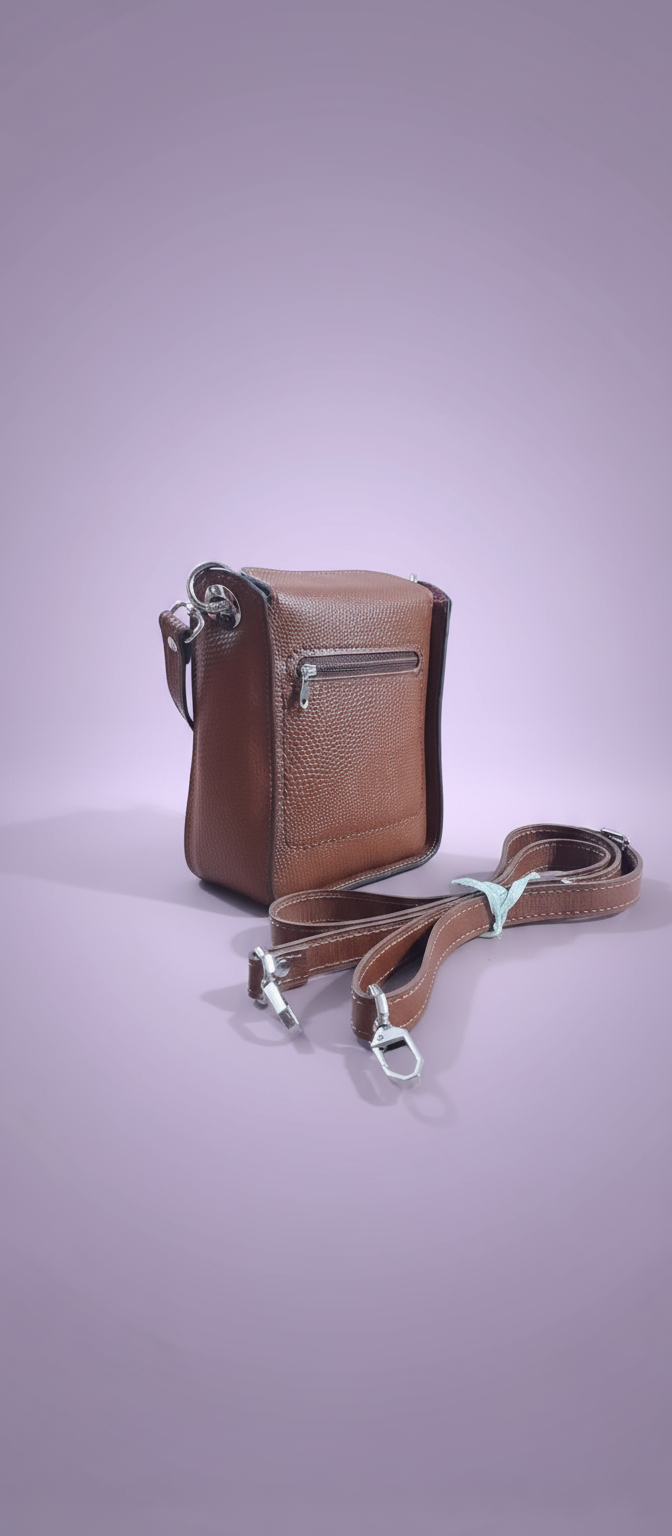 کیف دستی و دوشی زنانه تمام چرم طبیعی-رنگ قهوهای عسلی-ابعاد ۱۵×۱۸- یراق آبکاری و رنگ ثابت- دارای یک جیب در داخل کیف ویک جیب در پشت محصول: ۱