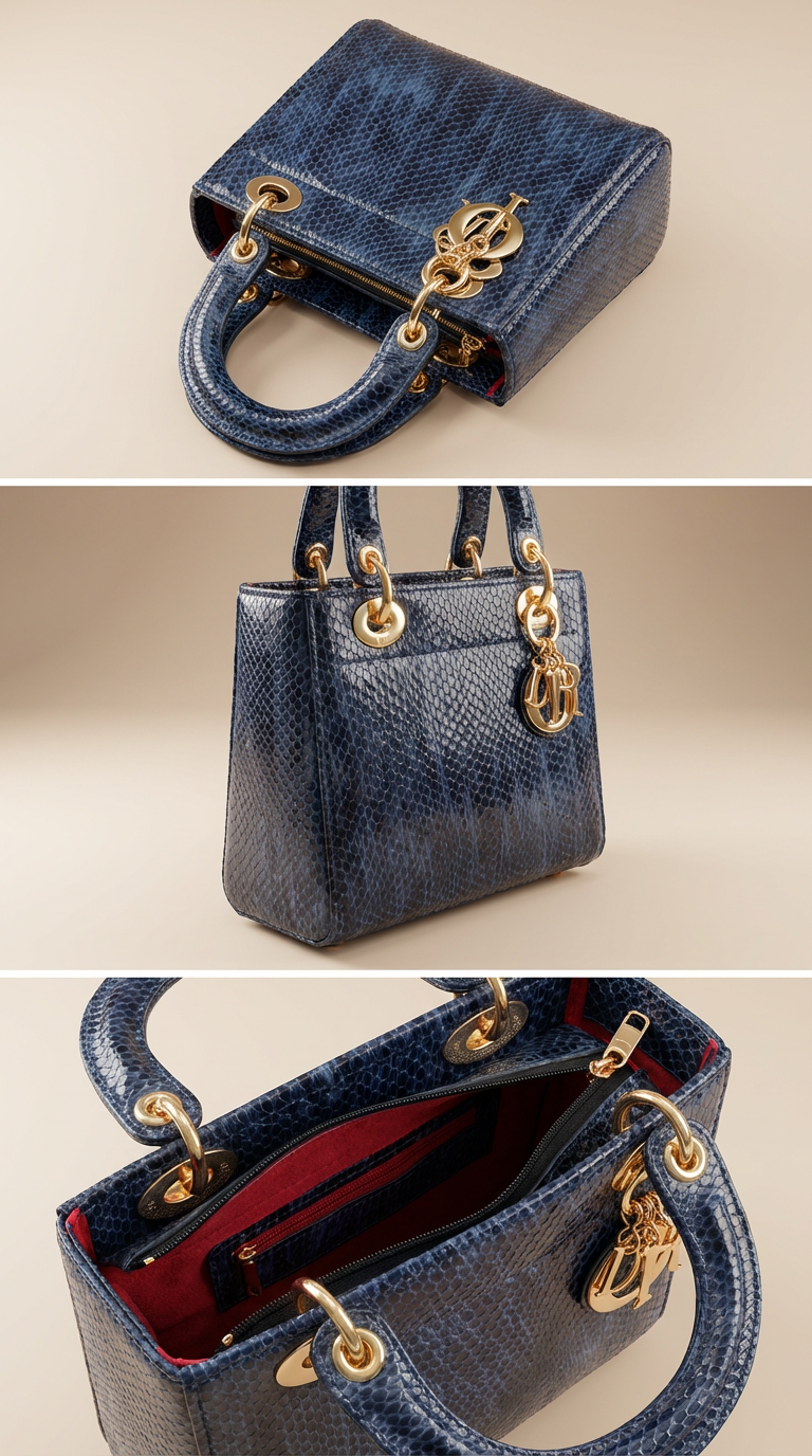 کیف دستی و دوشی زنانه، چرم اصل،طرح dior،رنک سرمه ای پیتون.،یراق آبکاری و رنگ ثابت، دارای بند بلند قابل تنظیم، طراحی زیبا و لوکس